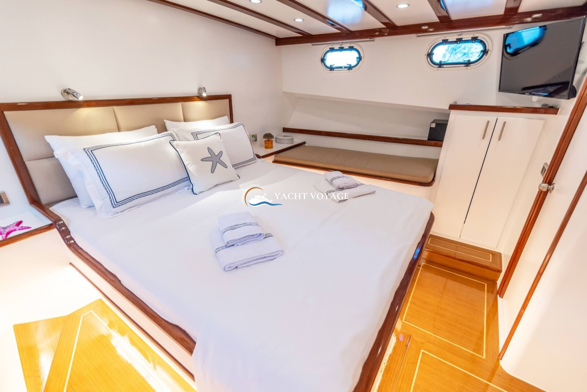 Bernis gulet ; 2022 yılında yapımı tamamlanan ve suya inen 3 kabinli lüks guletimiz Fethiye göcek limandan hareketle göceğin muhteşem koylarında siz mavi tur severlere hizmet vermektedir. Muhteşem koyları ve büyüleyici bakir doğası ile dünyanın en gözde tatil beldelerinden biri olan göcek bölgesi,son yıllarda popüler bir bölge haline gelmiştir. Lüks Gulet sınıfındaki Bernis gulet toplamda 3 adet kabine sahiptir. Kabin mimarisi; 1 adet master ve 2 double kabinden oluşmaktadır.Toplam 6 kişi konaklama kapasitesine sahiptir. Tam boy 18 metre ve eni 5,5 metredir. Teknemizde 1 adet kaptan,1 adet aşçı olmak üzere 3 personel bulunmaktadır. Teknemizde haftalık kiralama zorunluluğu yoktur. Minimum 3 gece ve üzeri kiralama yapabilirsiniz. Teknemize girişler saat 14:30 da olup,çıkışlar son gecenizin ertesi sabahı 09:30 dur.