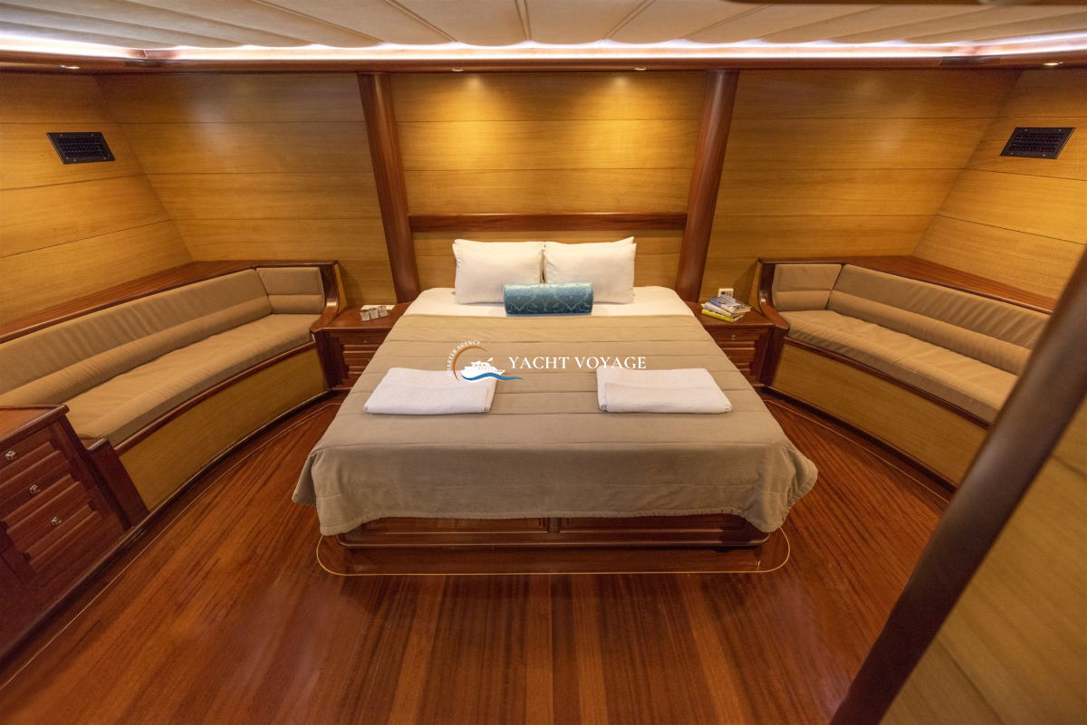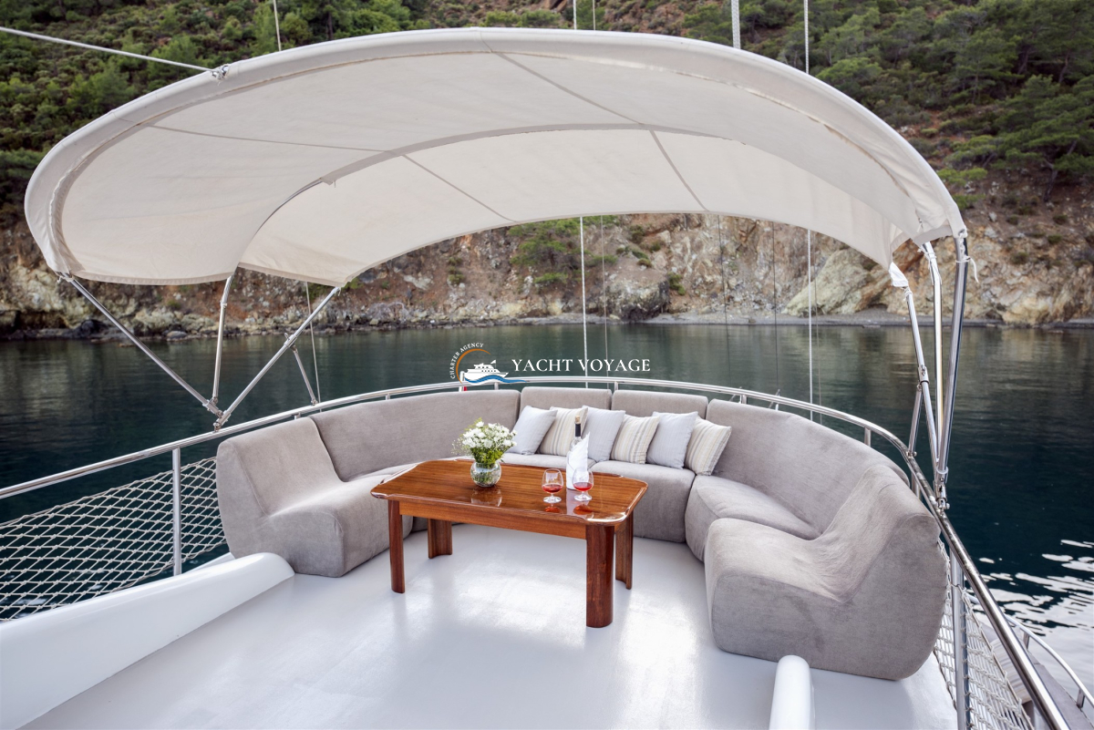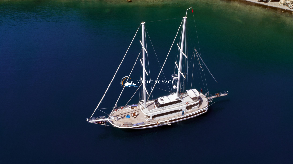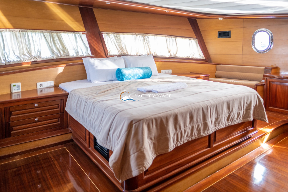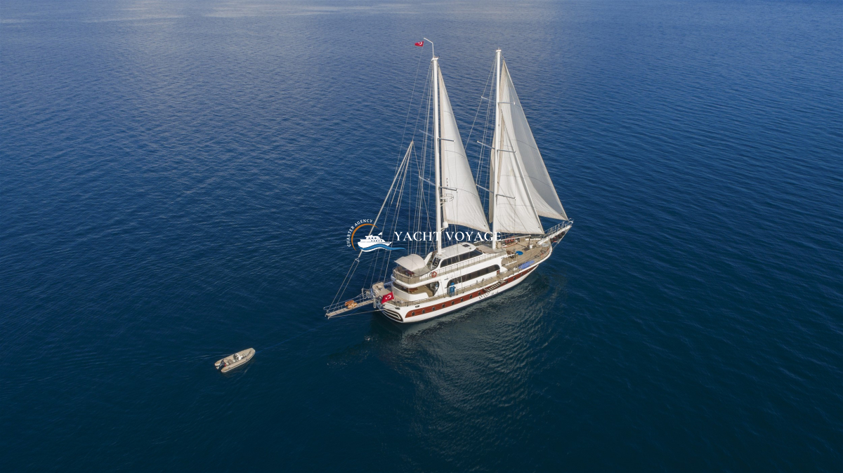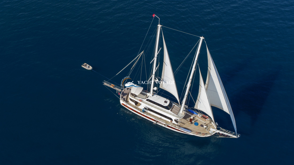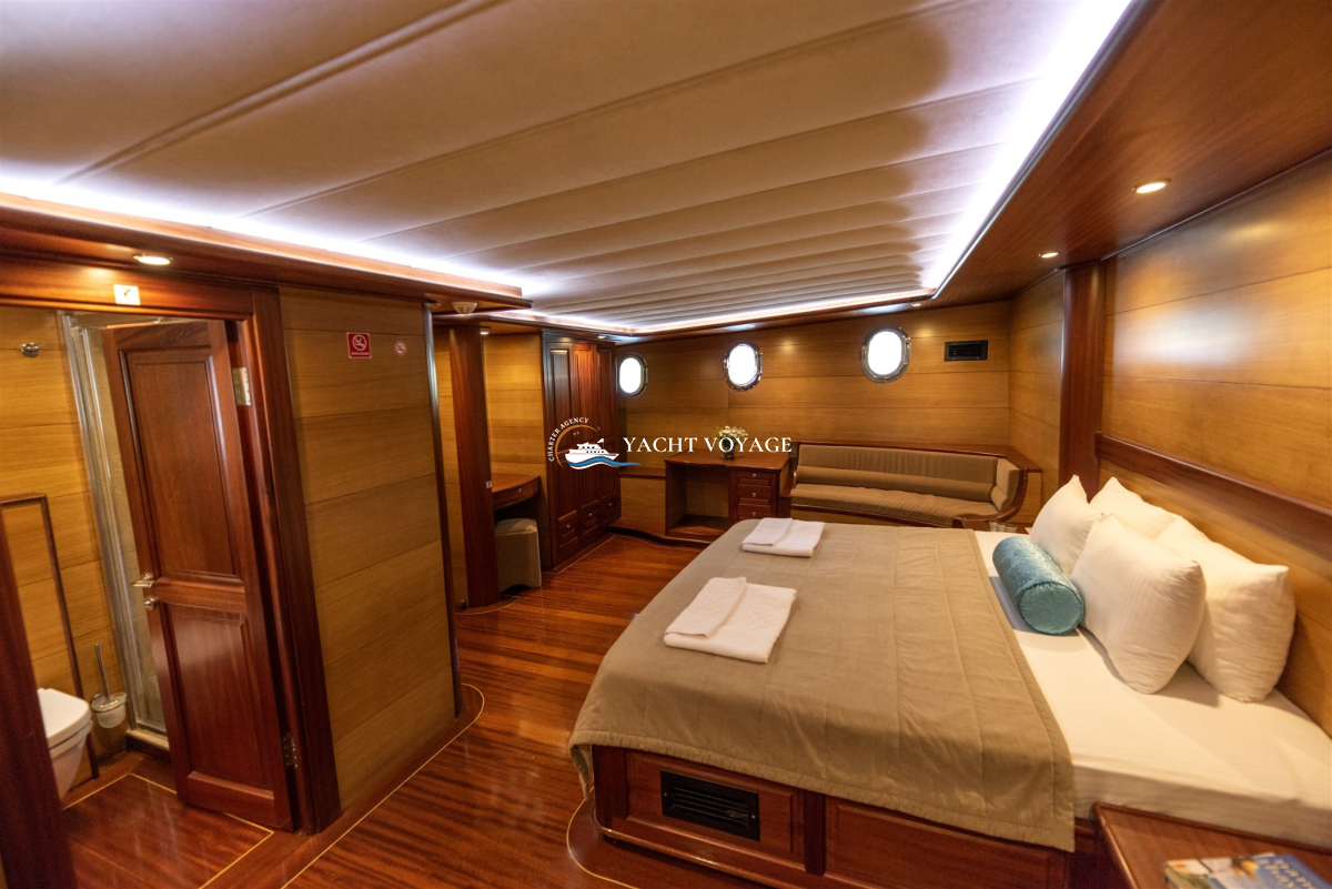 Mavi yolculuk tatilinizde özlediğiniz kalite ve konforu bir arada sunan lüks teknemiz, geniş ve şık yaşam alanlarıyla hizmetinizdedir. 29 metre uzunluğunda olan teknemiz, 5 adet kabiniyle 10 kişiye kadar olan nezih misafirlerimizi ağırlayabilme kapasitesine sahiptir. Her biri alanında deneyimli ve güleryüzlü 4 kişilik mürettebatımız, memnuniyetiniz odaklı ve kaliteli servis anlayışıyla hizmetinizdedir