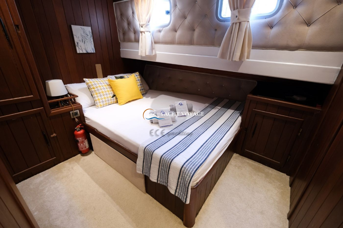 Ege ve Akdeniz'in eşsiz güzellikteki denizlerinde hizmet veren bu zarif Gulet, 2020 yılında tamamen yenilenmiştir. 26 metre, 4 Kabin, 9 Yolcu Guletimizin kabinleri 2 Master, 1 Double, 1 Twin olarak hazırlanmıştır. Her kabinde banyo & WC, merkezi klima, gardırop bulunmaktadır. Arka master kabinde çift kişilik yatağın yanı sıra çocuk yatağı da bulunmaktadır. Konforlu oturma alanları, 2 adet kapalı salonda klima, uydu-tv, ses sistemi ve internet bağlantısı bulunmaktadır. Ön güvertede geniş bir güneşlenme minderi ve bu güneşlenme alanını kapatan güneşlik, arka güvertede yemek masası ve tüm misafirleri için geniş bir oturma grubu bulunmaktadır. Pronto Blue Gulet'in profesyonel ve güler yüzlü, kendine ait yaşam alanlarına sahip mürettebatı, arkadaşlarınız ve aile gruplarınızla yapacağınız mavi yolculuk tatilinizde size memnuniyetle eşlik edecektir.